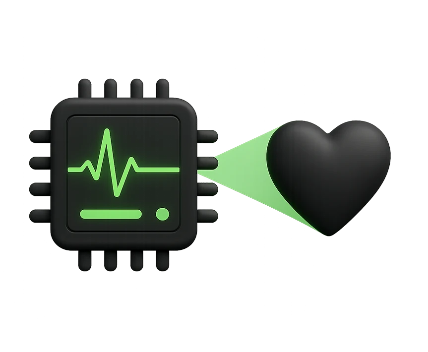 Our contact‑free RF sensor array captures micro‑motions of the chest and fuses them with on‑device intelligence to reveal clear heart‑ and breathing‑rate trends in real time. The system operates quietly in the background, uses minimal power, and respects user privacy at every step.